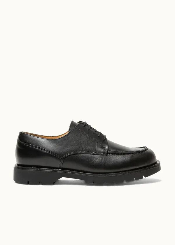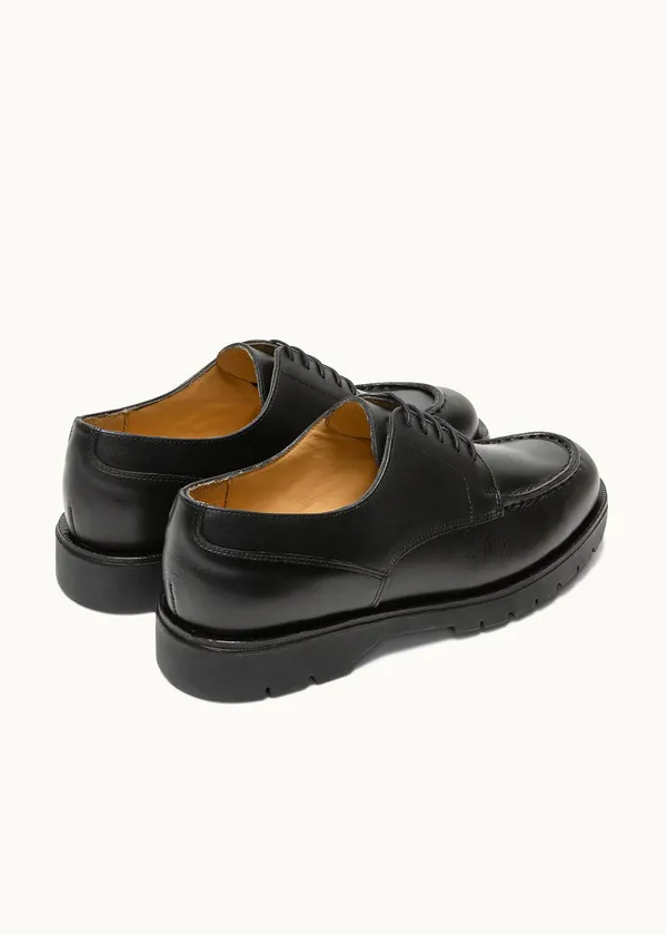 Derbies noirs pour homme, fabriqués en France en cuir certifié. Coupe classique et finitions soignées pour un style élégant au quotidien, alliant savoir-faire traditionnel et mode responsable.